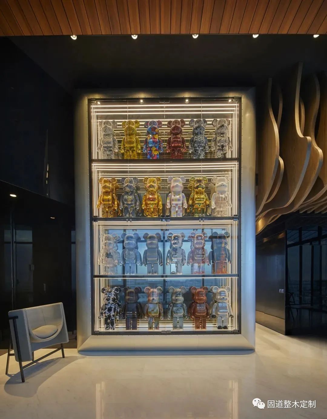 將商品演繹為藝術(shù),把愛(ài)好根植于家中;起居空間內(nèi),原木色的展示柜成了最好的藝術(shù)櫥窗,各式潮玩依次擺放,極大地豐富了空間的視覺(jué)層次。 不管幾歲,童心萬(wàn)歲;玻璃柜內(nèi)各種積木熊有序排列,生動(dòng)的細(xì)節(jié)刻畫(huà),呆萌可愛(ài)的神態(tài),讓每個(gè)駐足于此的人愛(ài)不釋手。 任何一種趨于美好的向往,都具有鮮活的生命力;空間中朦朧的格紋玻璃與方格的木質(zhì)柜體交匯,讓柜體內(nèi)收藏的手辦成了空間中最大的焦點(diǎn)。 居家的藝術(shù)性,不止于設(shè)計(jì),更包含諸多專(zhuān)屬于居者個(gè)性的標(biāo)簽及對(duì)家的希冀;嵌入式的柜體設(shè)計(jì),讓更多珍貴的收藏在這一方空間得以展示。 時(shí)空計(jì)量生活,酷愛(ài)綻放生命,洄游形超高黑色壁柜,擺滿居者的收藏,在光線的照耀下,一個(gè)個(gè)手辦以飽滿的勁頭感受著時(shí)光穿梭的豁然。 設(shè)計(jì)美學(xué)是空間多維度的碰撞,是克制與平衡,表象與內(nèi)在的統(tǒng)一;開(kāi)放式的展示柜結(jié)合現(xiàn)代的設(shè)計(jì)語(yǔ)言,將家的溫情傾注于每個(gè)細(xì)節(jié)之處。 每個(gè)人心中都住著一個(gè)孩子,心懷星河,一如少年;略微縮進(jìn)的墻面柜內(nèi)擺滿了各種珍藏,透明的玻璃柜門(mén)將灰塵隔離,遠(yuǎn)遠(yuǎn)望去極具視覺(jué)沖擊力。 一個(gè)家里的輪廓里,潛藏著居者對(duì)生活的態(tài)度;秩序百變的玻璃柜內(nèi),放置了各路角色的手辦及潮玩收藏,駐足其中,不禁讓人感嘆一句“爺青回”。 固道認(rèn)為:空間和人一樣,都是有成長(zhǎng)性的,隨著內(nèi)心世界的不斷充實(shí),家的模樣也會(huì)變得更加鮮活。