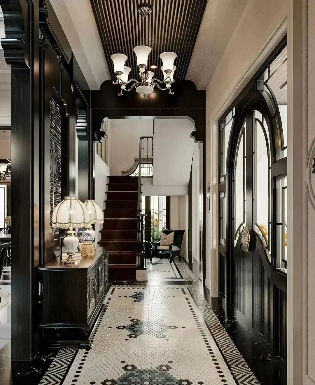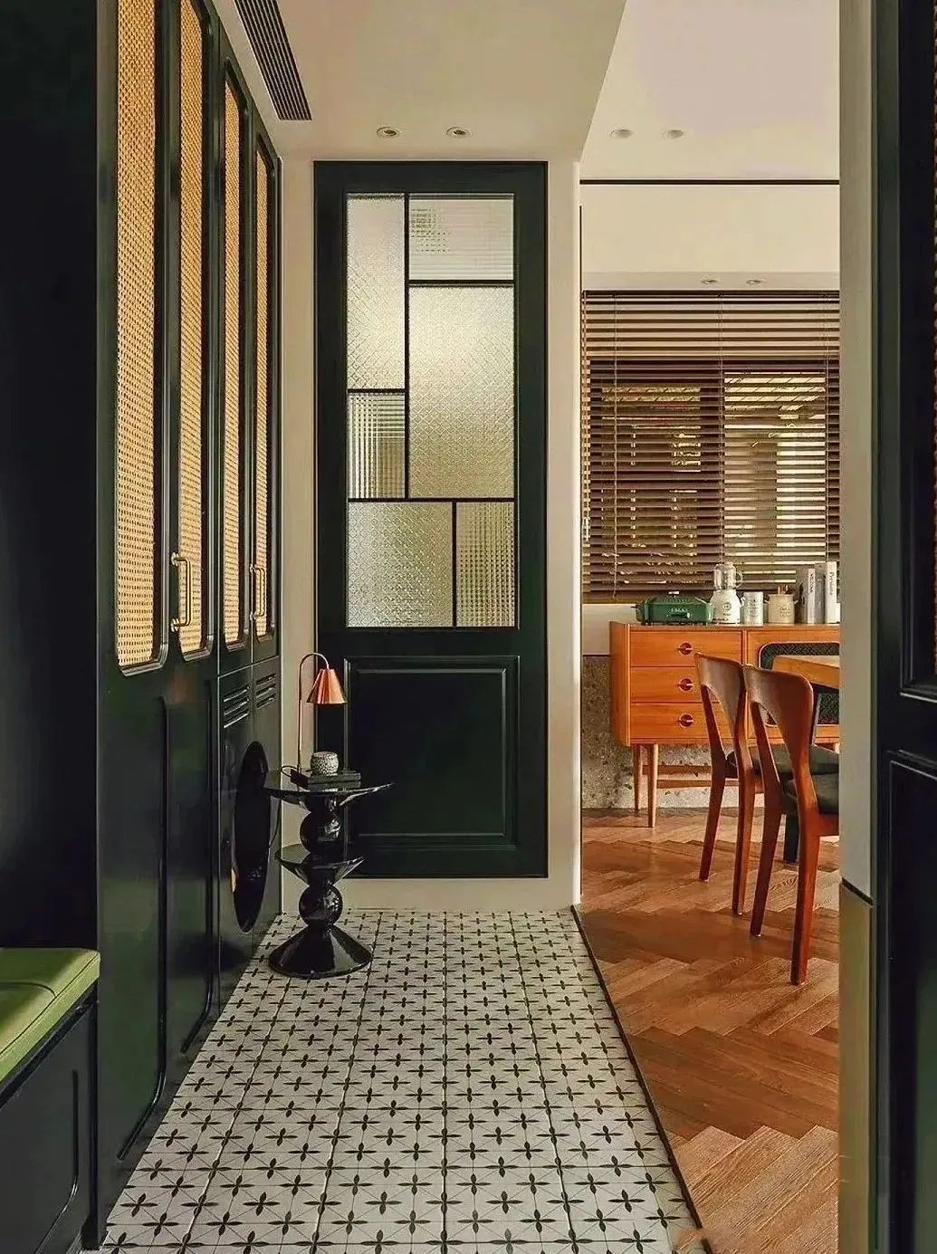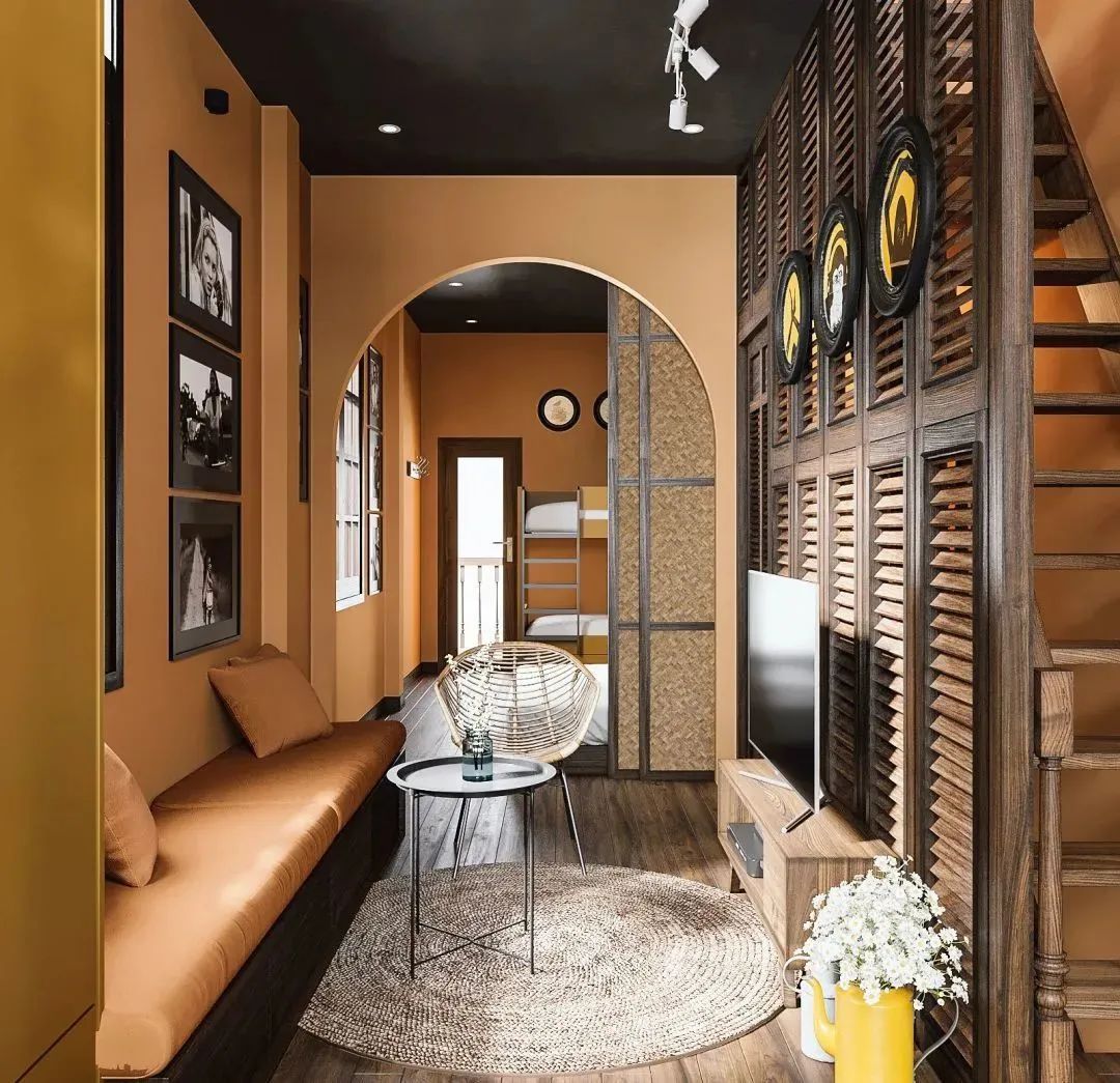 舊時光里走來的南洋風,它既有東南亞的熱情奔放,又有中國文化的深沉溫厚,時光之下,它是斑斕的熱情,是無拘束的自我。 空間之道 向心生發(fā) ;南洋風的設計里,每一個細節(jié)都別具一格,利用材質(zhì)與色調(diào)的對比提升空間質(zhì)感,實現(xiàn)了一種中外融合的藝術(shù)質(zhì)感。 凹凸有致的木飾面造型,豐富空間的層次感,拱形門洞的設計盡顯曲線的慵懶之美;當午后的陽光照射進來時,這一隅成了打發(fā)獨處的時光最好的去處。 南洋風明媚溫馨,熱烈中蘊藏著含蓄??臻g以“輕奢、自然”為設計筆觸,讓居者在藝術(shù)與生活之間找到專屬的平衡。 柔和的色調(diào),以細膩的設計筆觸將生活的溫暖娓娓道來。臥室空間內(nèi)撞色墻面被充滿南洋風情的藝術(shù)畫填滿,整個空間如同加了一層懷舊電影的濾鏡。 以清晰的布局,簡潔的表現(xiàn)形式來滿足對空間屬性的需求。書房內(nèi)利落干凈的線條,輔以中式元素點綴,盡顯婉約的中式意境。 木飾面自帶天然肌理感,以溫和之力,貫穿始終。純粹的綠色調(diào)墻面,整潔有序的排布方式,詮釋著知性典雅的方寸之所。 舍棄了多樣的元素干擾,設計師將收藏和藝術(shù)一起放進空間里,以跳躍性的視覺感官感受來突出空間的靈動,為空間注入情感記憶和氣度。