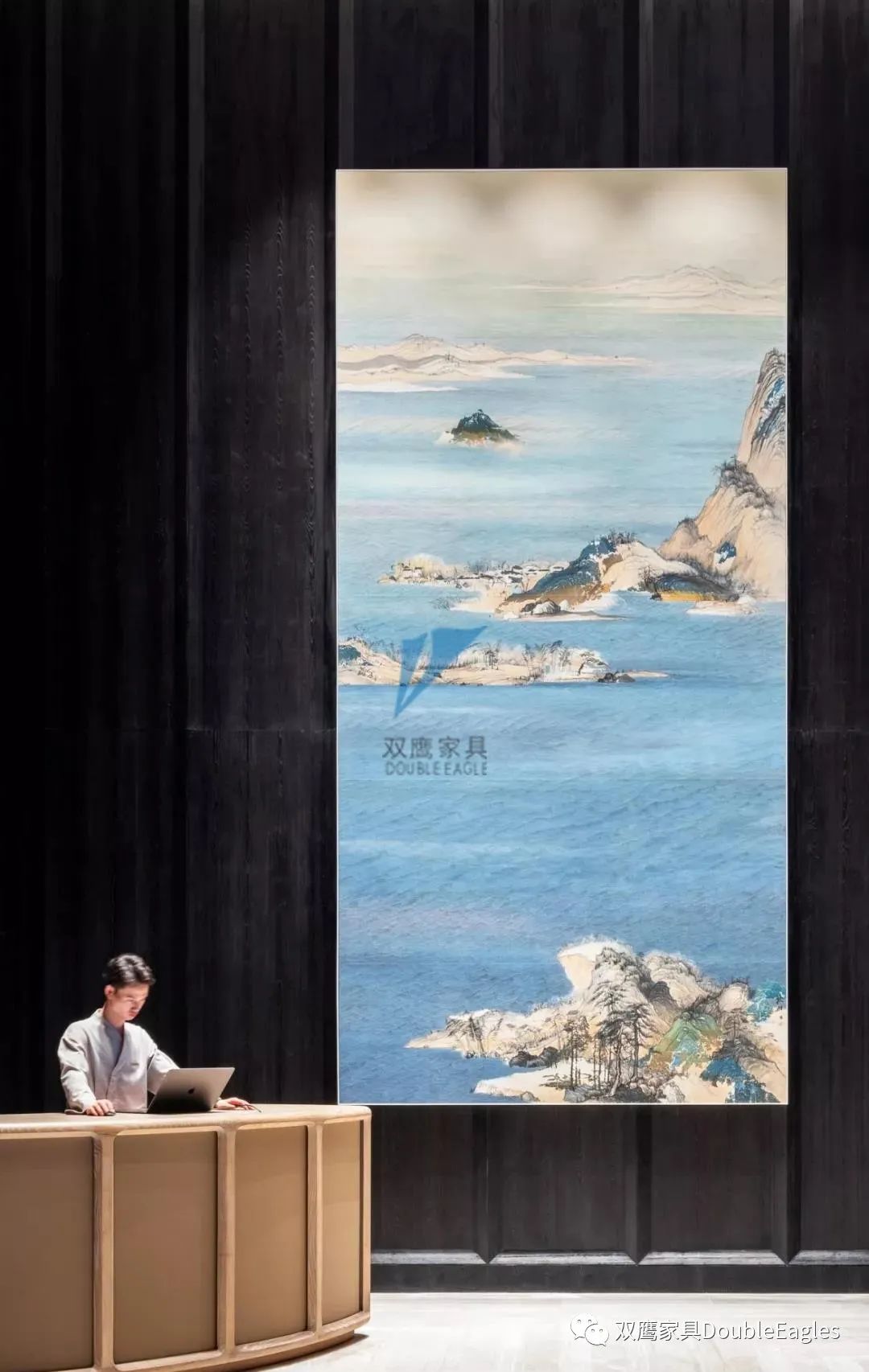 酒店大堂懸掛著一副巨型的裝飾畫,以純粹的山水文化揭開室內(nèi)的序幕,它安靜的接納,在深色木飾墻面的映襯下如生命般簡單質(zhì)樸、源遠(yuǎn)流長。